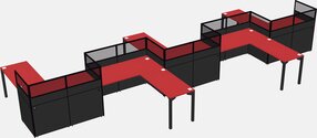 Postes De Travail En L Prism Red Pour 5 Personnes - Formation En Zigzag + Retour De Panneau