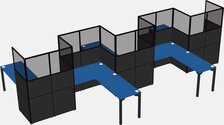 Postes De Travail En L Prism Blue Pour 5 Personnes - Formation En Zigzag + Retour De Panneau