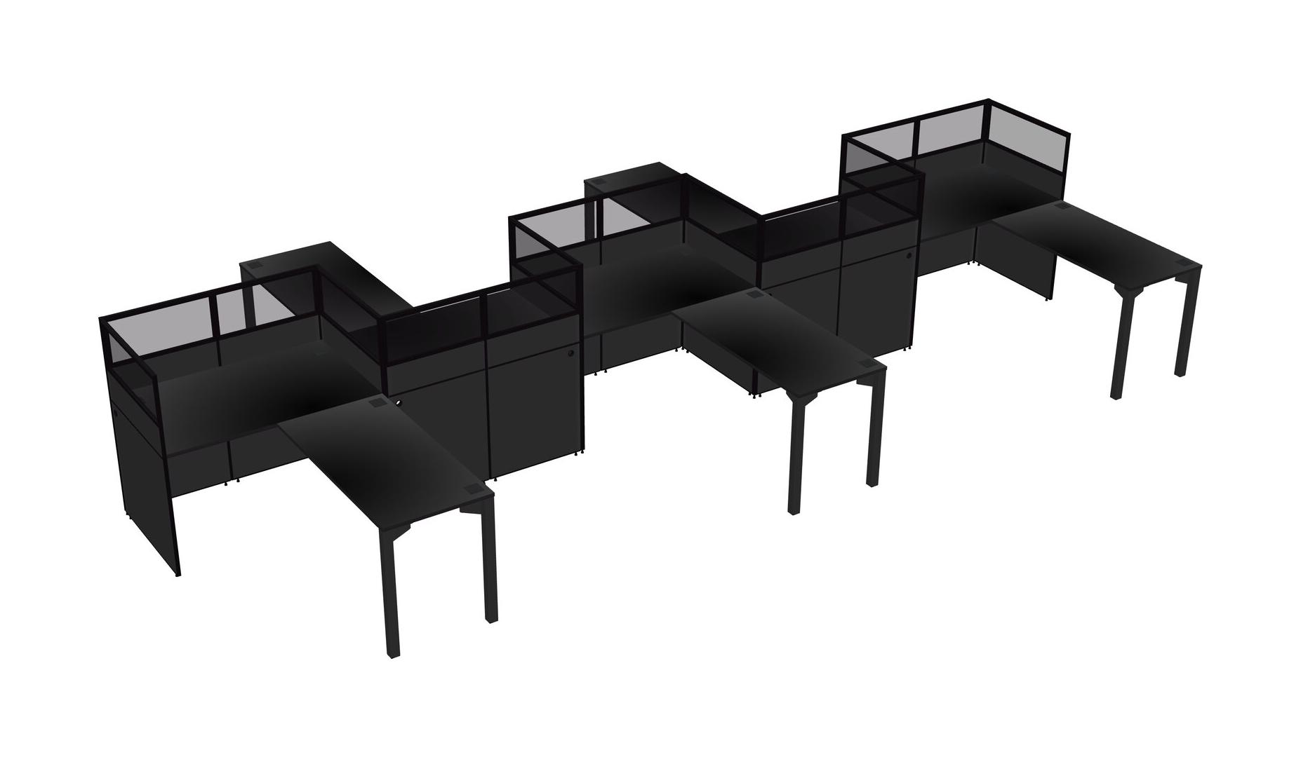 Postes De Travail En L Noirs Pour 5 Personnes - Formation En Zigzag + Retour De Panneau