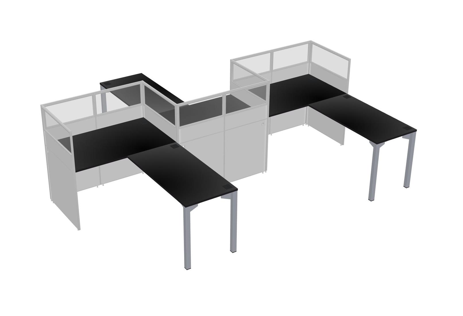 Postes De Travail En L Noirs Pour 3 Personnes - Formation En Zigzag + Retour De Panneau