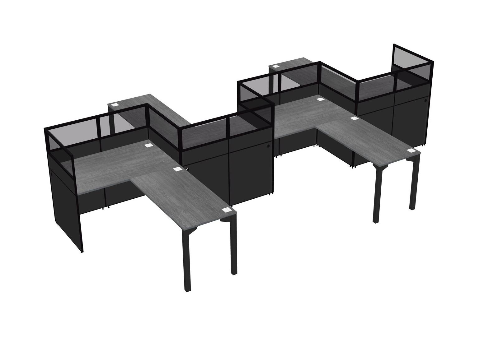 Postes De Travail En L Gris Pour 4 Personnes - Formation En Zigzag + Retour De Panneau