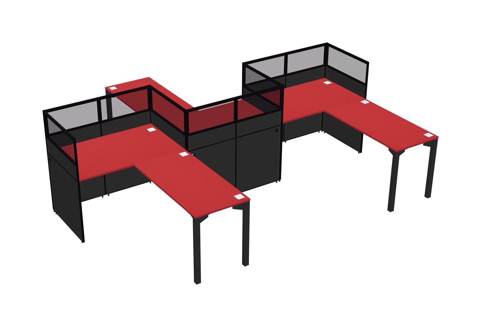 Postes De Travail En L Prism Red Pour 3 Personnes - Formation En Zigzag + Retour De Panneau