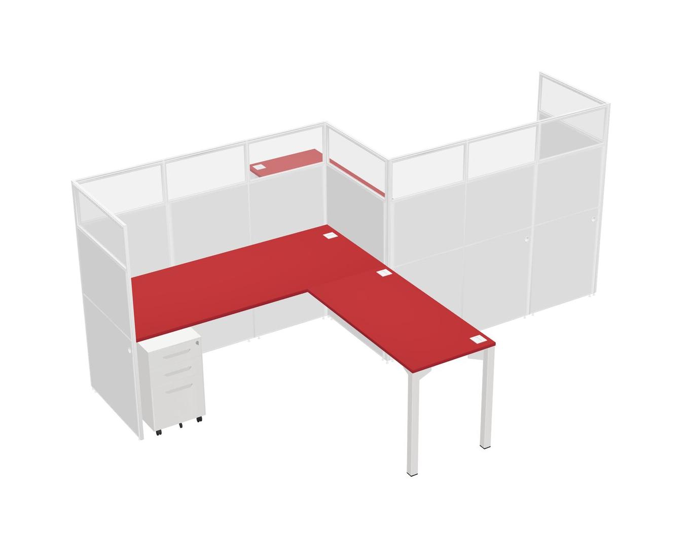 Postes De Travail En L Prism Red Pour 2 Personnes - Formation En Zigzag + Tiroirs Mobiles En Métal Blanc + Retour De Panneau