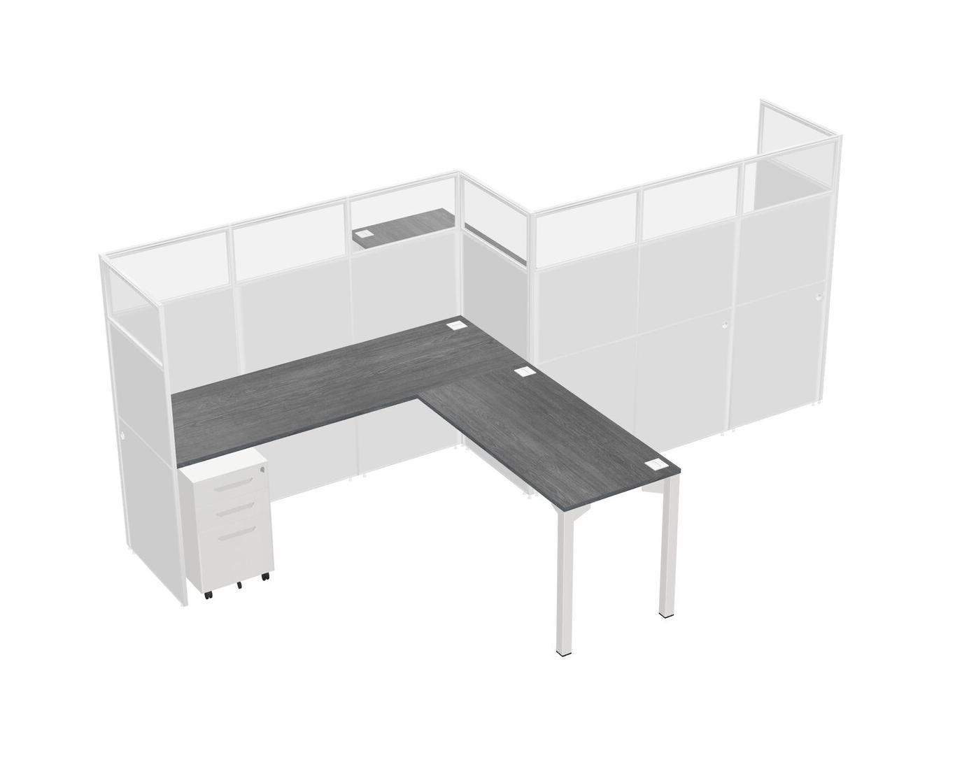 Postes De Travail En L Gris Pour 2 Personnes - Formation En Zigzag + Tiroirs Mobiles En Métal Blanc + Retour De Panneau