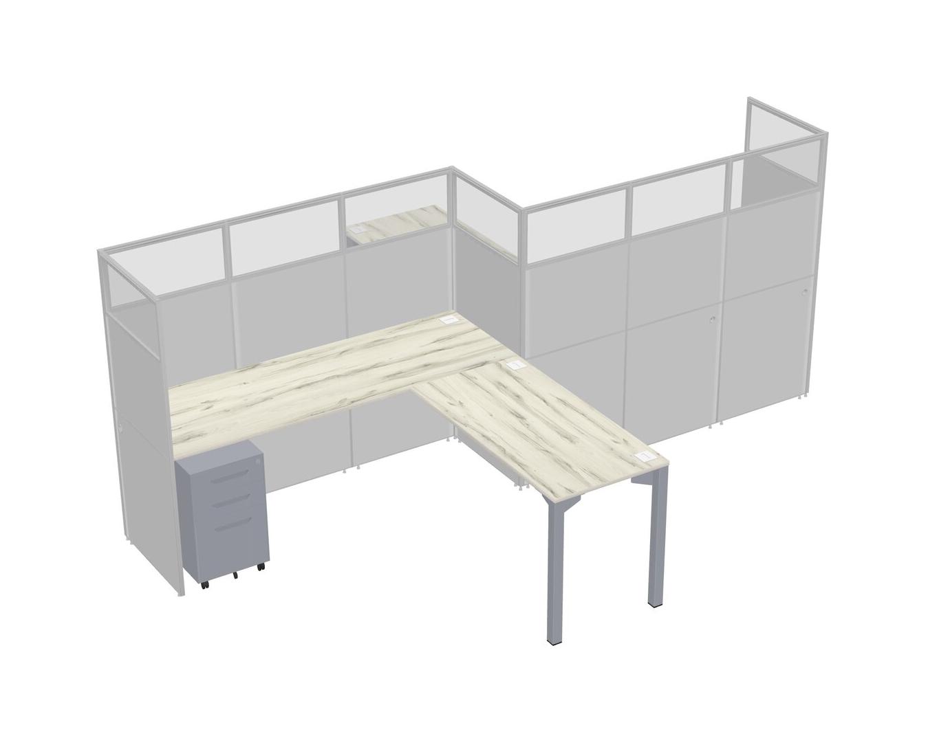 Postes De Travail En L Heinne Holz Pour 2 Personnes - Formation En Zigzag + Tiroirs Mobiles En Métal Gris + Retour De Panneau