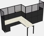 Postes De Travail En L Heinne Holz Pour 2 Personnes - Formation En Zigzag + Tiroirs Mobiles En Métal Noir + Retour De Panneau