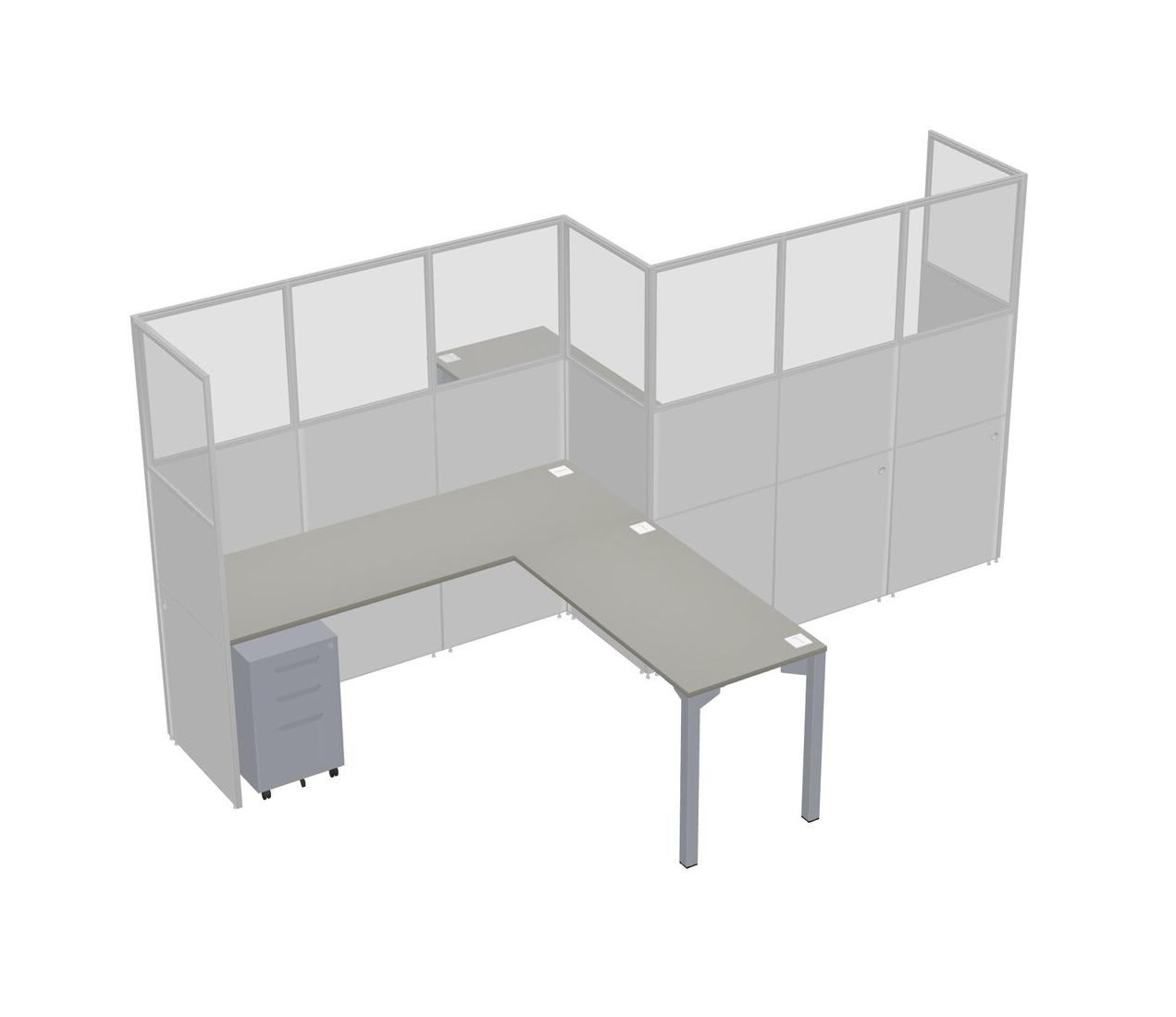 Postes De Travail En L Grey Shadows Pour 2 Personnes - Formation En Zigzag + Tiroirs Mobiles En Métal Gris + Retour De Panneau