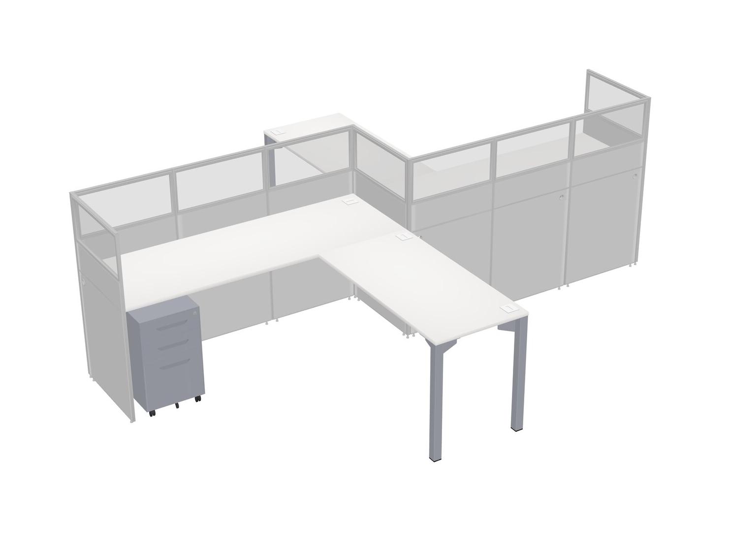 Postes De Travail En L Blancs Pour 2 Personnes - Formation En Zigzag + Tiroirs Mobiles En Métal Gris + Retour De Panneau
