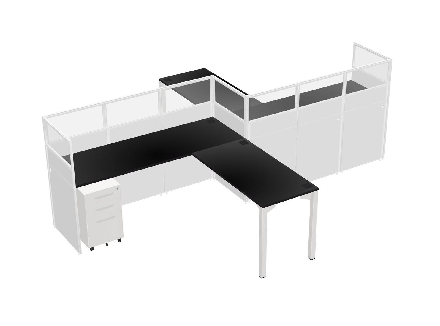 Postes De Travail En L Noirs Pour 2 Personnes - Formation En Zigzag + Tiroirs Mobiles En Métal Blanc + Retour De Panneau