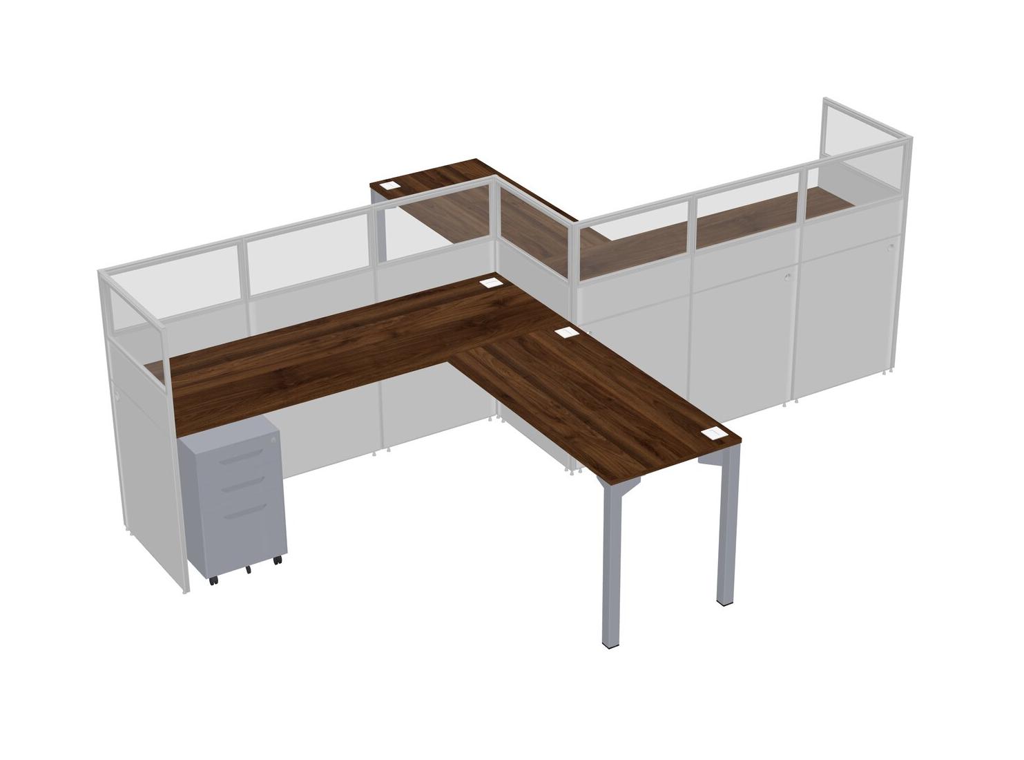 Postes De Travail En L En Noyer Columbia Pour 2 Personnes - Formation En Zigzag + Tiroirs Mobiles En Métal Gris + Retour De Panneau