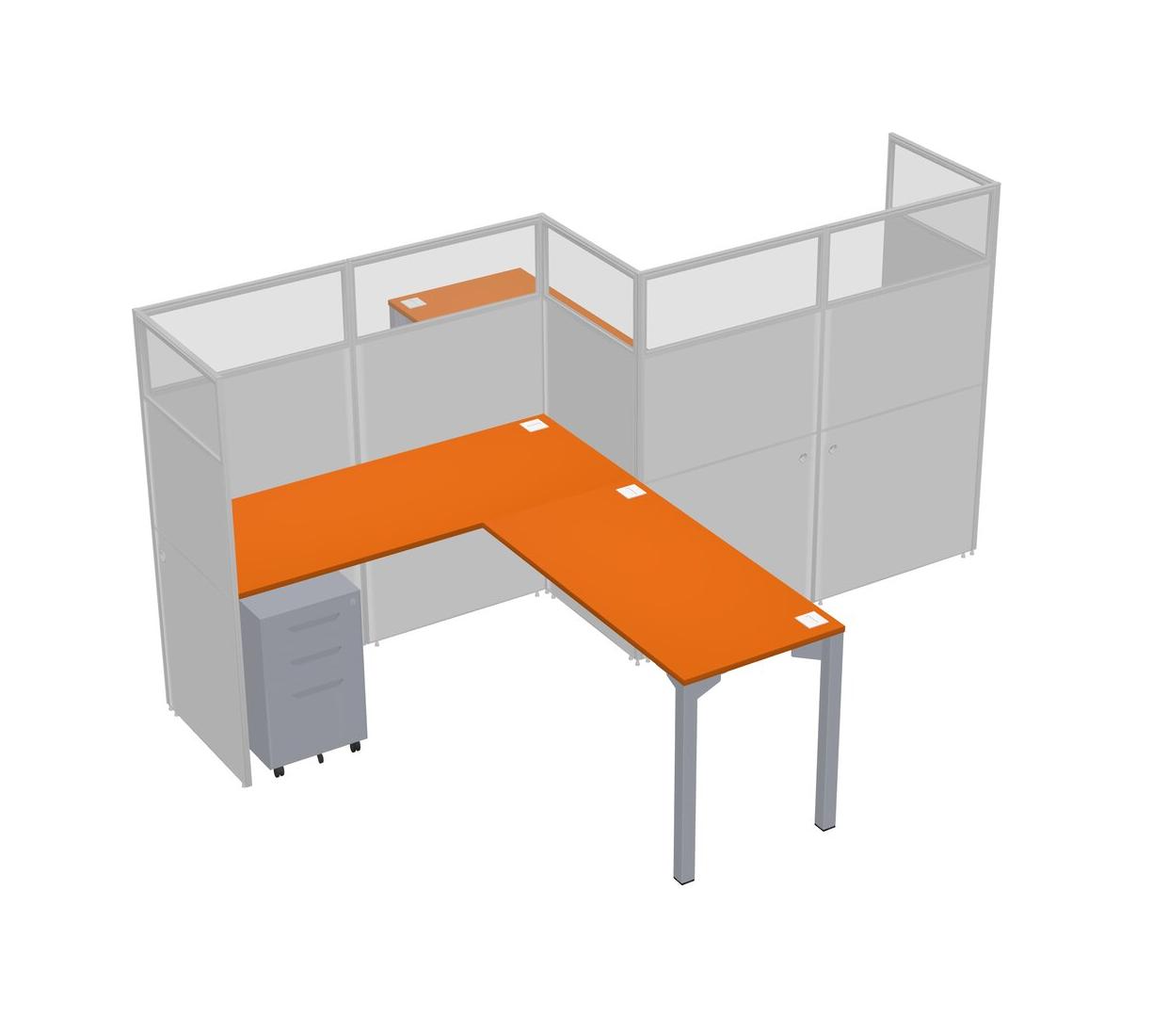 Postes De Travail En L Orange Pour 2 Personnes - Formation En Zigzag + Tiroirs Mobiles En Métal Gris + Retour De Panneau