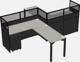 Postes De Travail En L Grey Shadows Pour 2 Personnes - Formation En Zigzag + Tiroirs Mobiles En Métal Noir + Retour De Panneau