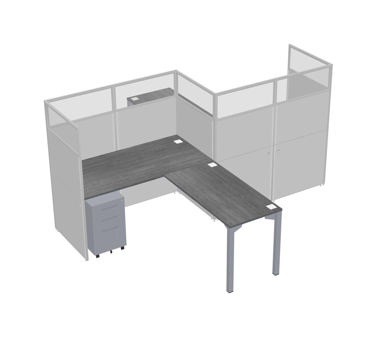 Postes De Travail En L Gris Pour 2 Personnes - Formation En Zigzag + Tiroirs Mobiles En Métal Gris + Retour De Panneau