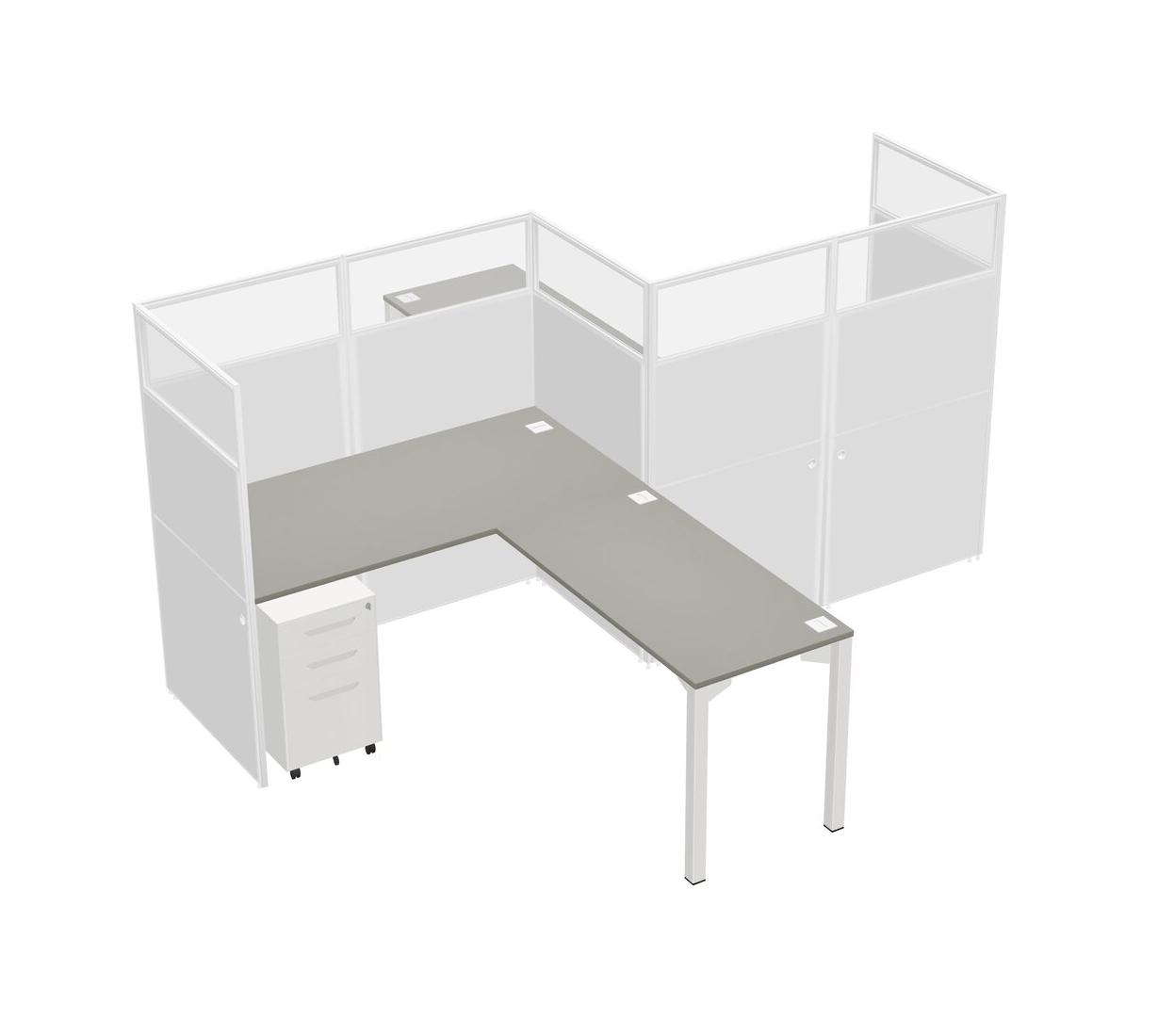 Postes De Travail En L Grey Shadows Pour 2 Personnes - Formation En Zigzag + Tiroirs Mobiles En Métal Blanc + Retour De Panneau