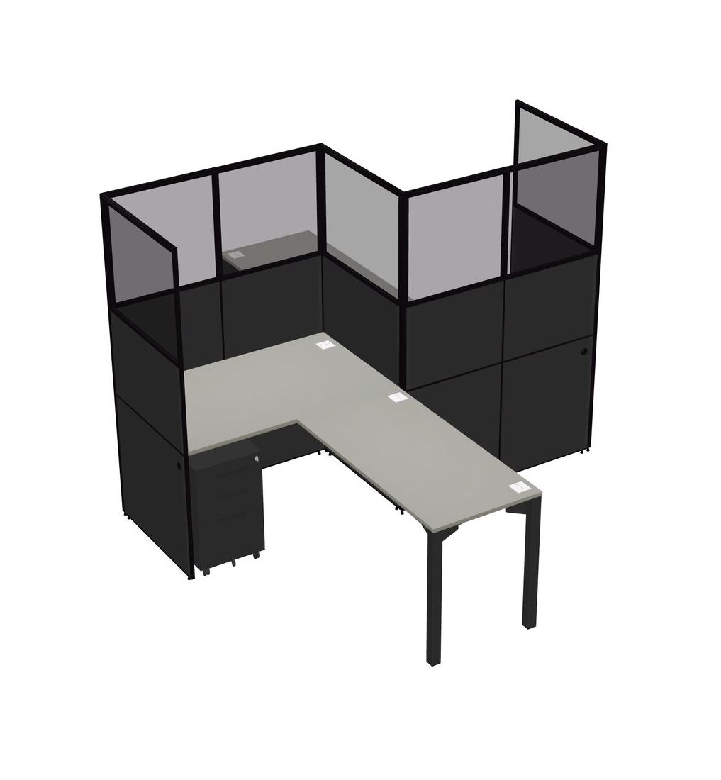 Postes De Travail En L Grey Shadows Pour 2 Personnes - Formation En Zigzag + Tiroirs Mobiles En Métal Noir + Retour De Panneau