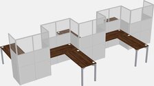 Postes De Travail En L En Noyer Columbia Pour 5 Personnes - Formation En Zigzag + Retour De Panneau