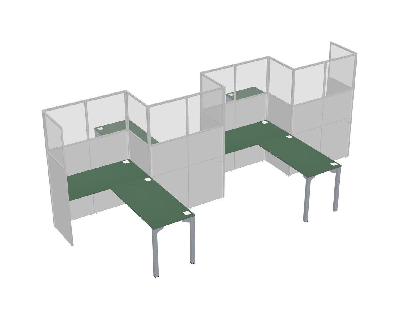 Postes De Travail En L Verts Pour 4 Personnes - Formation En Zigzag + Retour De Panneau
