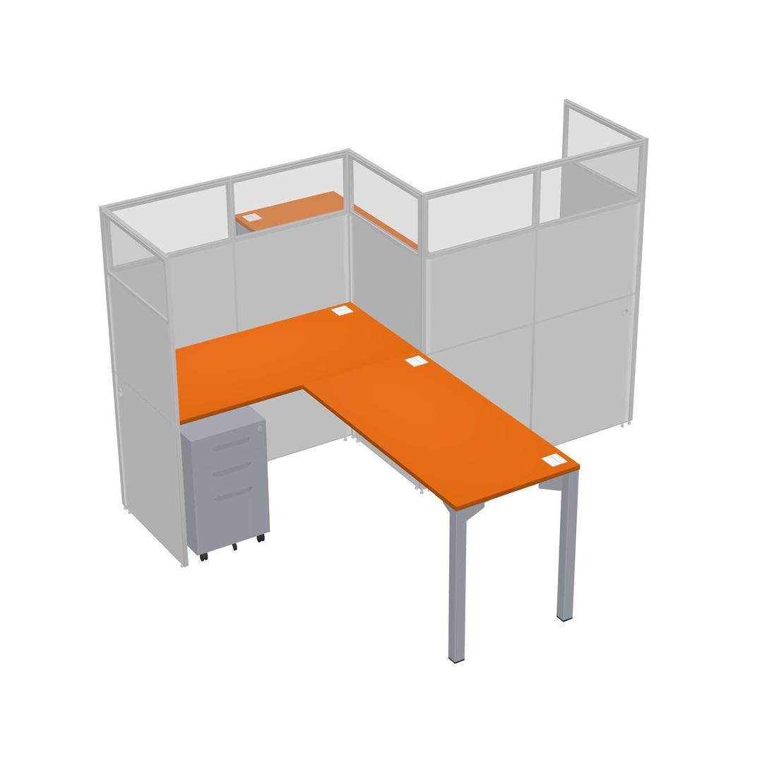 Postes De Travail En L Orange Pour 2 Personnes - Formation En Zigzag + Tiroirs Mobiles En Métal Gris + Retour De Panneau
