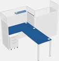 Postes De Travail En L Prism Blue Pour 2 Personnes - Formation En Zigzag + Tiroirs Mobiles En Métal Blanc + Retour De Panneau