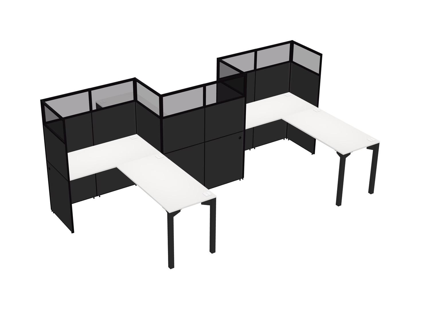 Postes De Travail Blancs En L Pour 3 Personnes - Formation En Zigzag + Retour De Panneau