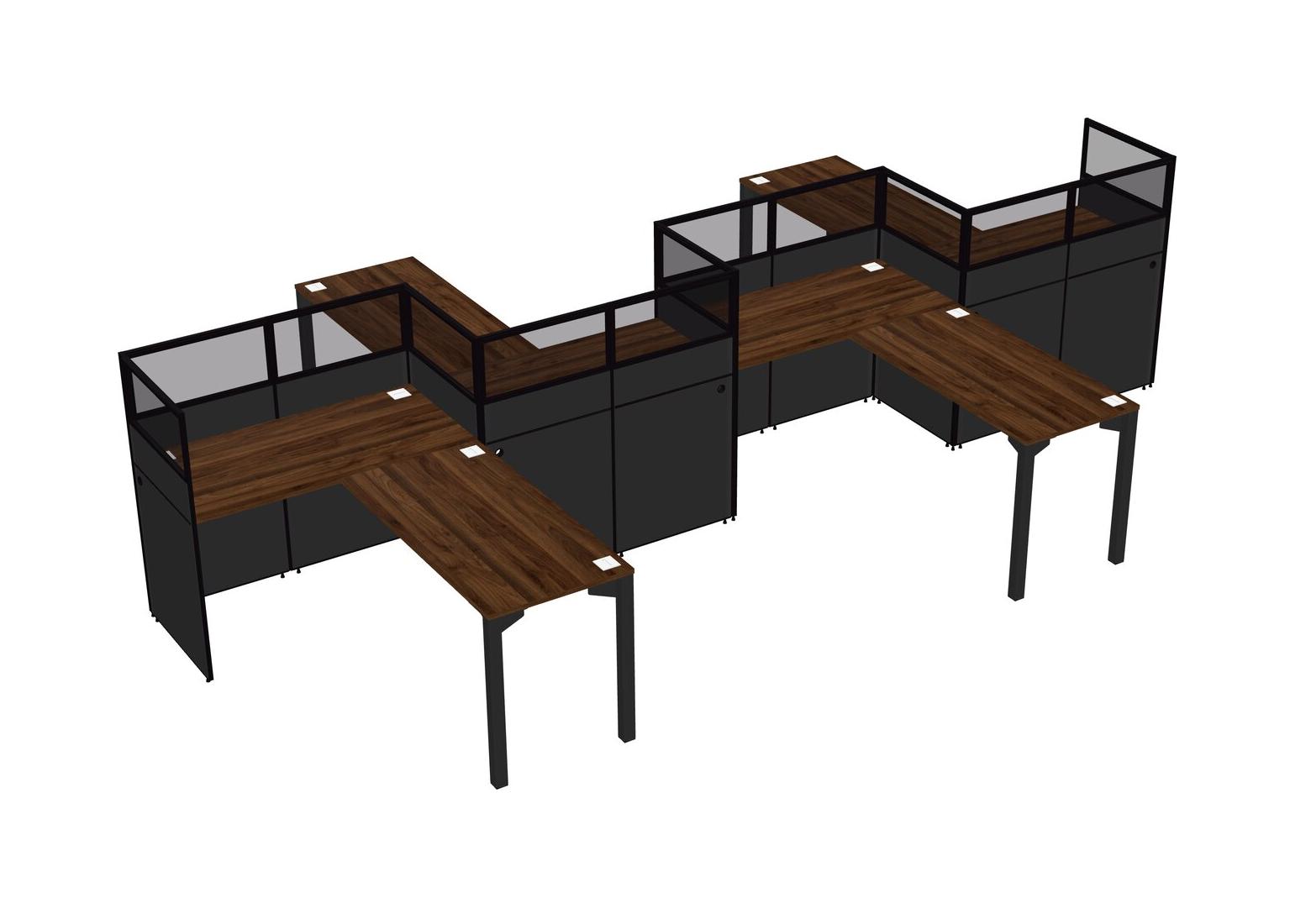 Postes De Travail En L En Noyer Columbia Pour 4 Personnes - Formation En Zigzag + Retour De Panneau