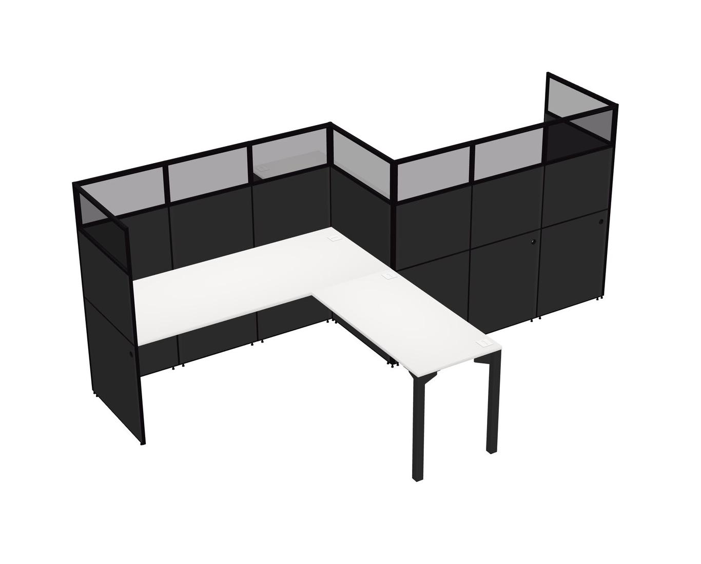 Postes De Travail Blancs En L Pour 2 Personnes - Formation En Zigzag + Retour De Panneau