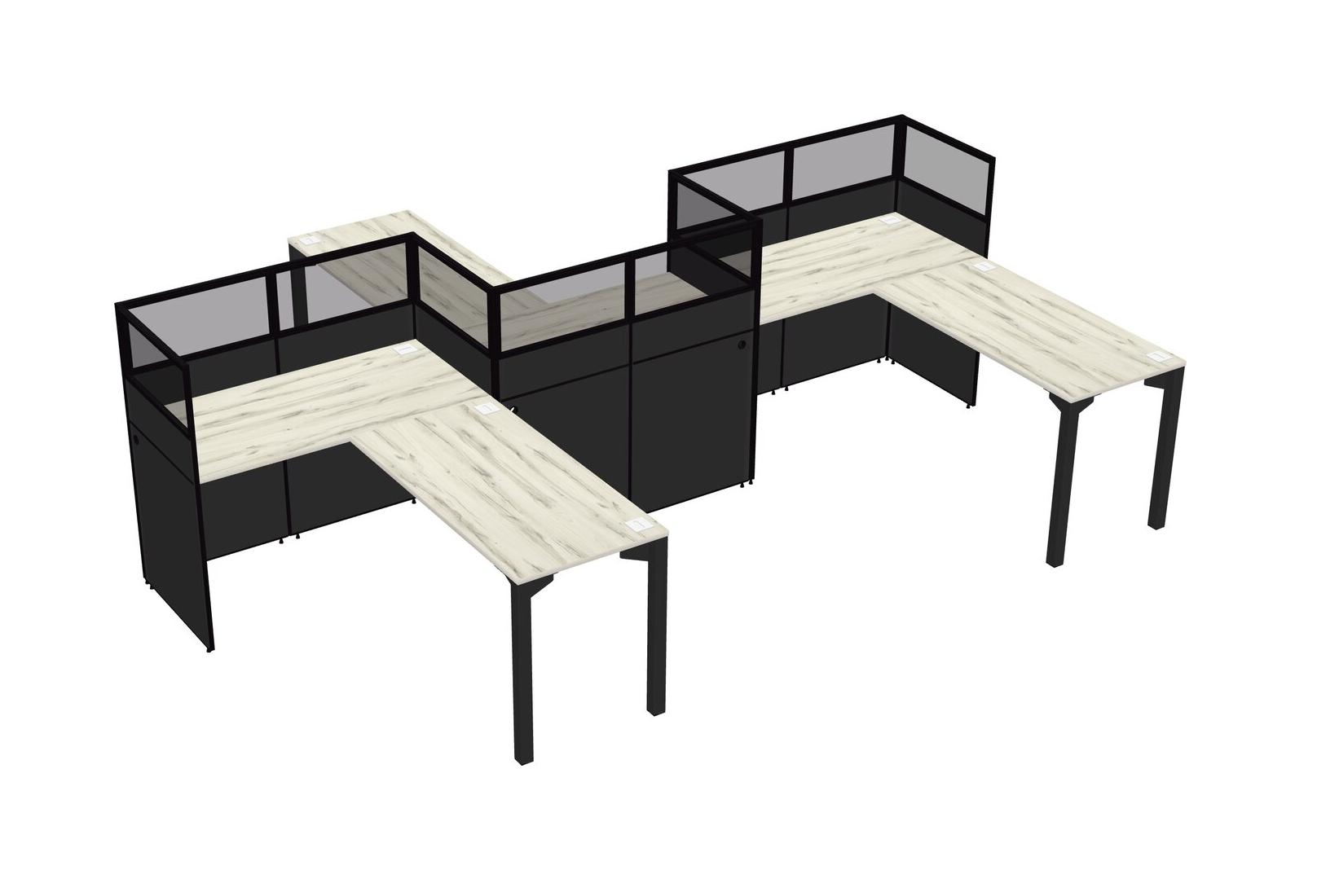 Postes De Travail En L Heinne Holz Pour 3 Personnes - Formation En Zigzag + Retour De Panneau