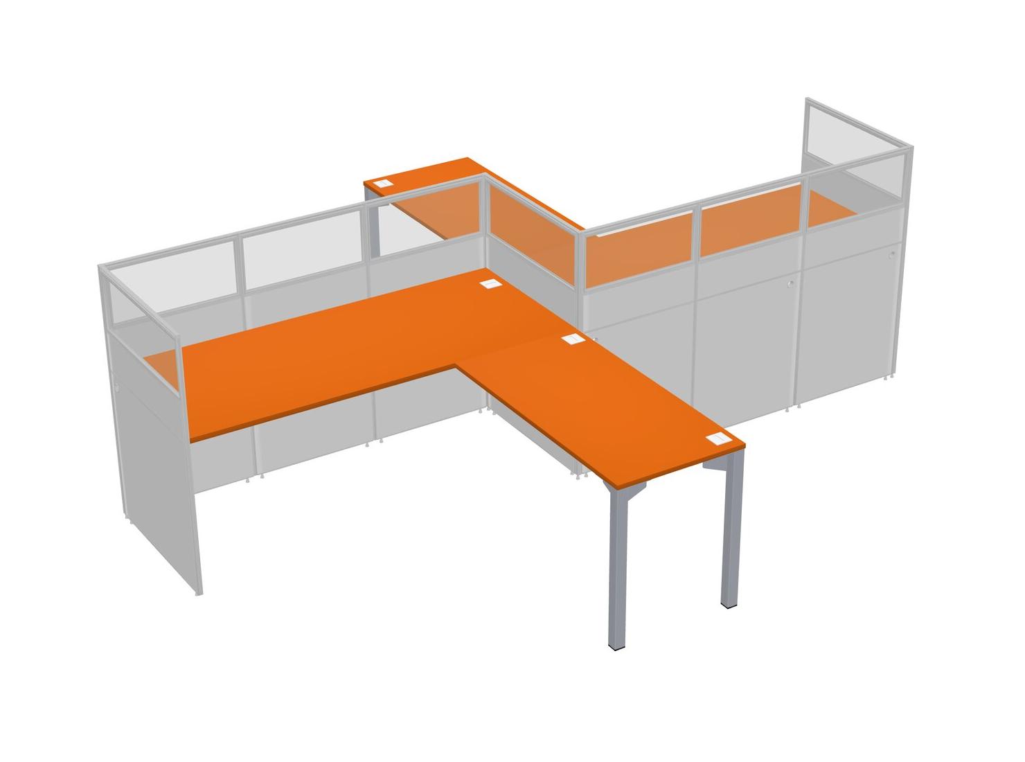 Postes De Travail En L Orange Pour 2 Personnes - Formation En Zigzag + Retour De Panneau