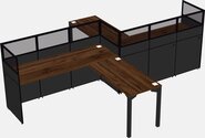 Postes De Travail En L En Noyer Columbia Pour 2 Personnes - Formation En Zigzag + Retour De Panneau