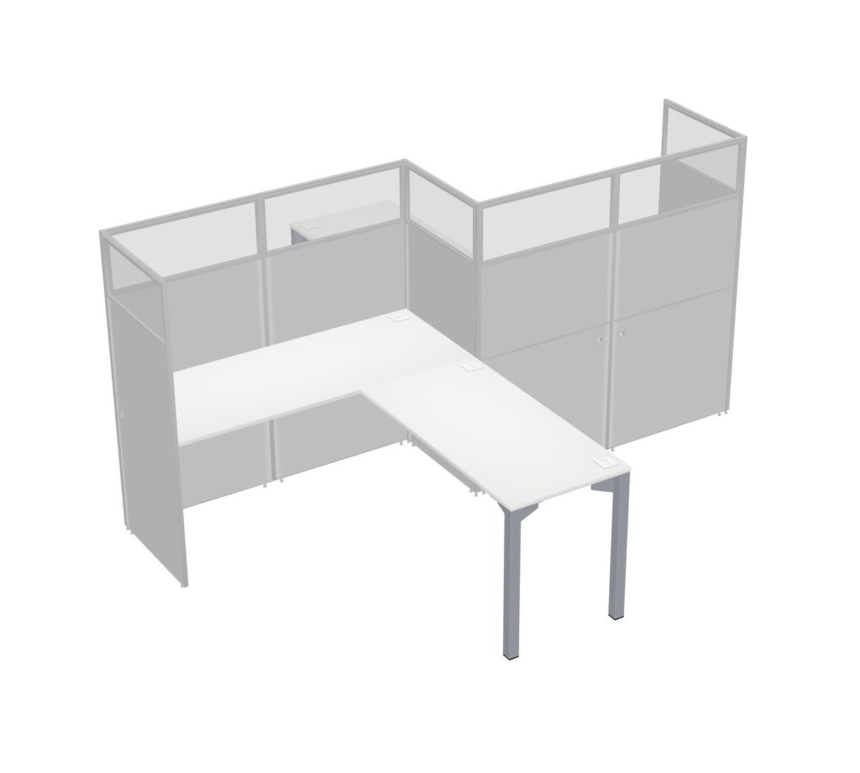 Postes De Travail Blancs En L Pour 2 Personnes - Formation En Zigzag + Retour De Panneau