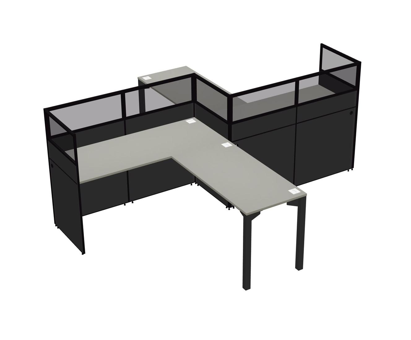 Postes De Travail En L Grey Shadows Pour 2 Personnes - Formation En Zigzag + Retour De Panneau