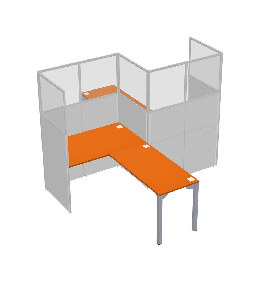 Postes De Travail En L Orange Pour 2 Personnes - Formation En Zigzag + Retour De Panneau