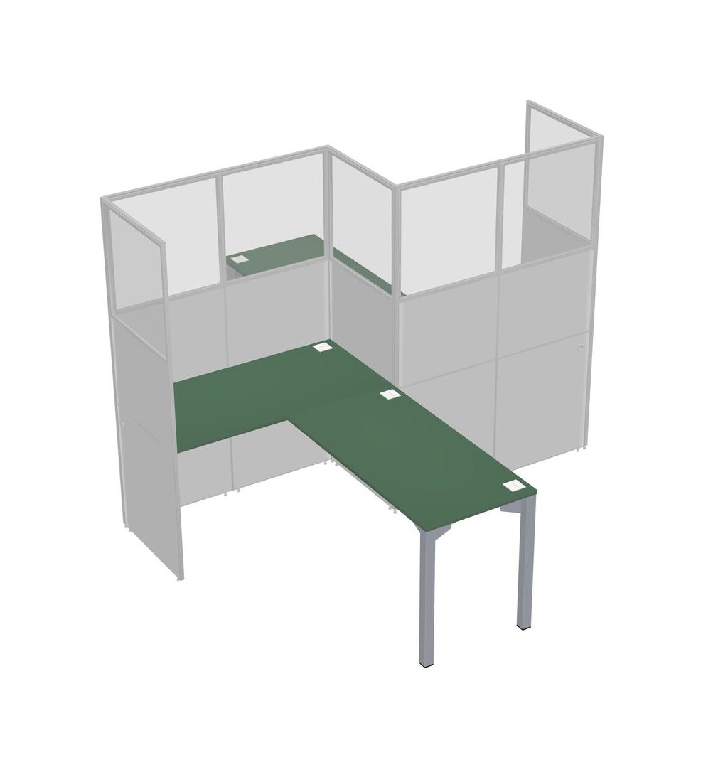 Postes De Travail En L Verts Pour 2 Personnes - Formation En Zigzag + Retour De Panneau