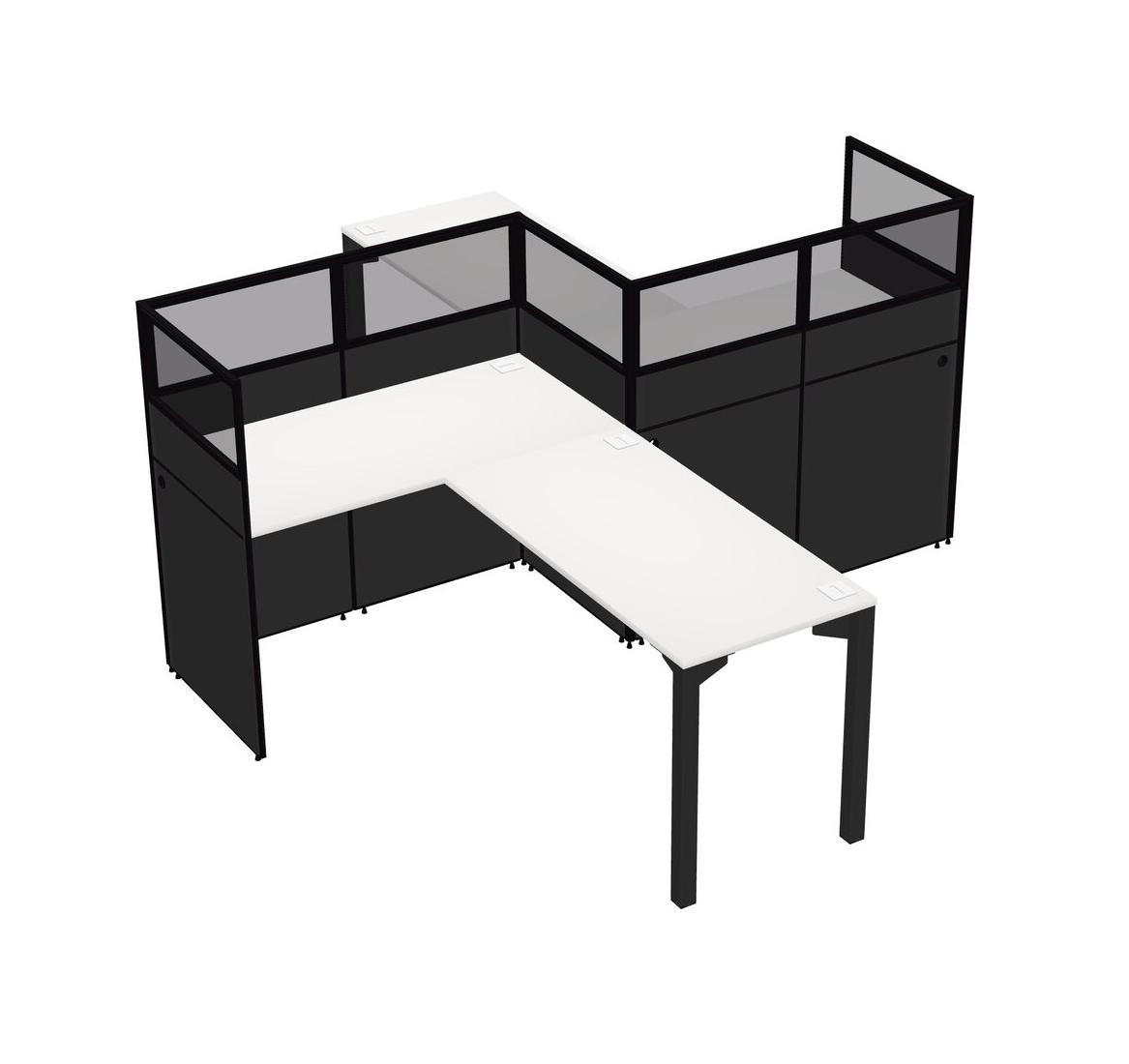 Postes De Travail Blancs En L Pour 2 Personnes - Formation En Zigzag + Retour De Panneau