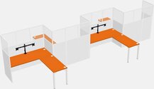 Postes De Travail En L Orange Pour 4 Personnes - Formation En Zigzag + Retour De Panneau