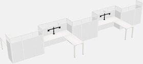 Postes De Travail Blancs En L Pour 5 Personnes - Formation En Zigzag + Retour De Panneau