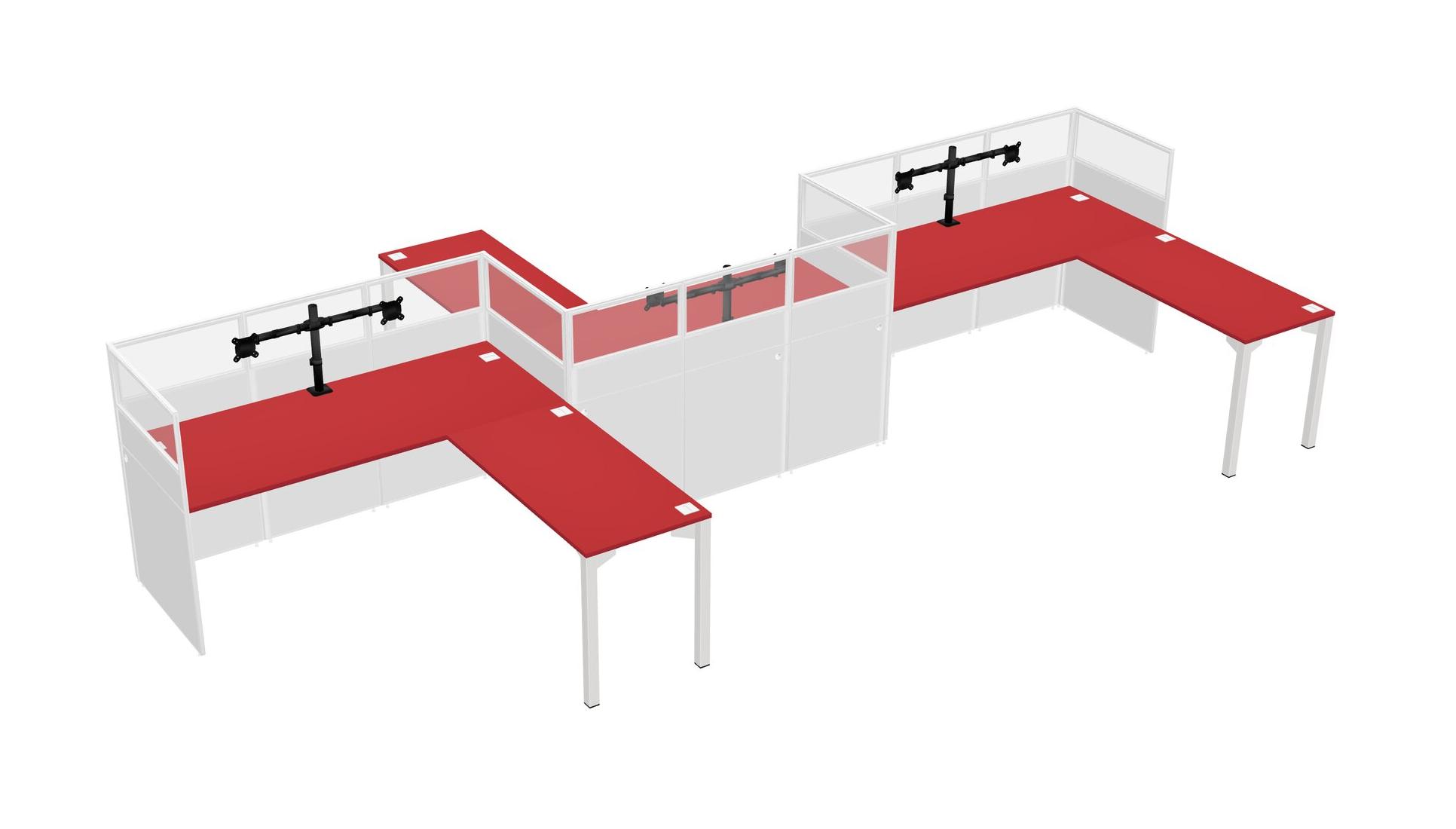 Postes De Travail En L Prism Red Pour 3 Personnes - Formation En Zigzag + Retour De Panneau