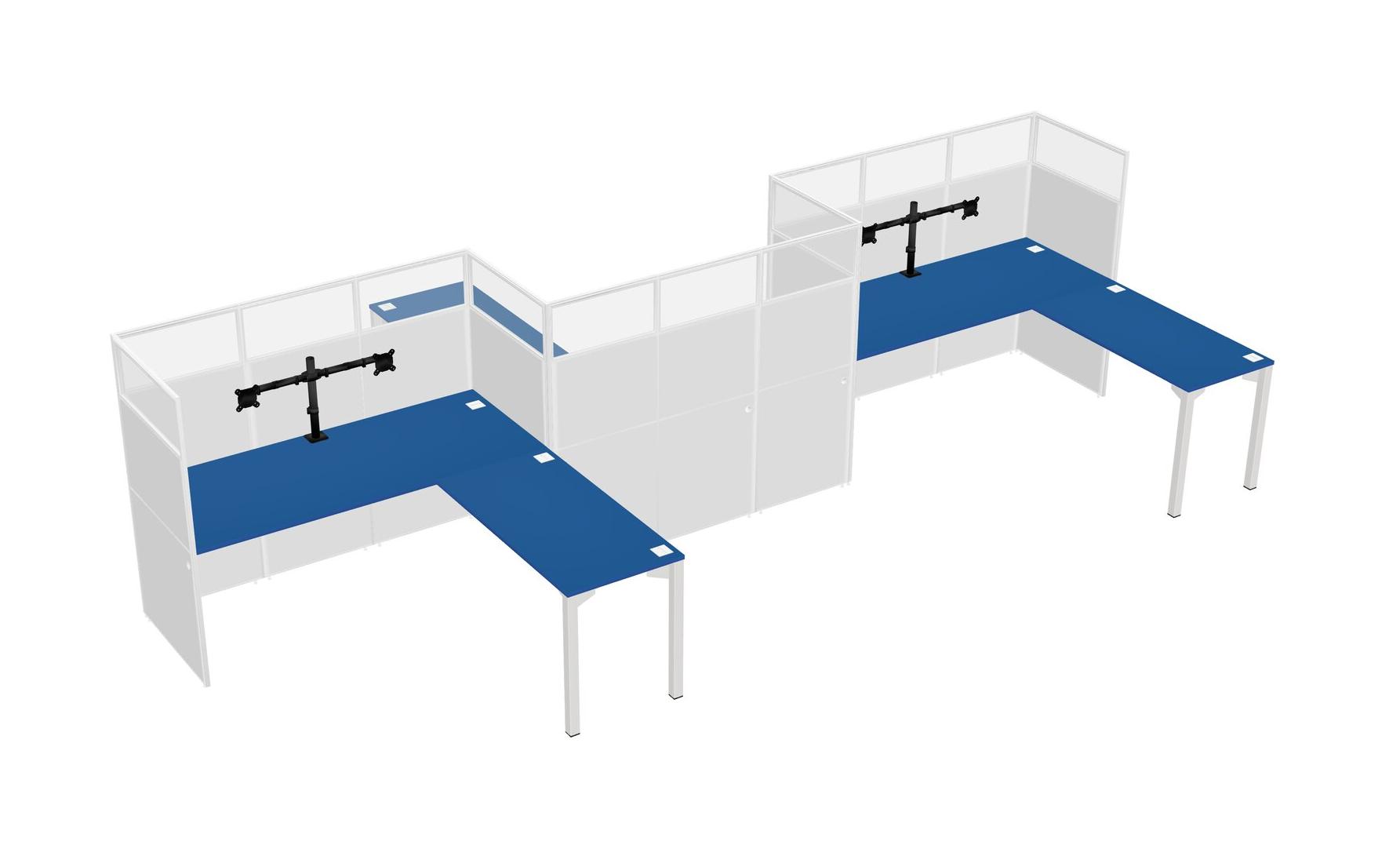 Postes De Travail En L Prism Blue Pour 3 Personnes - Formation En Zigzag + Retour De Panneau