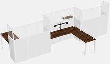Postes De Travail En L En Noyer Columbia Pour 3 Personnes - Formation En Zigzag + Retour De Panneau