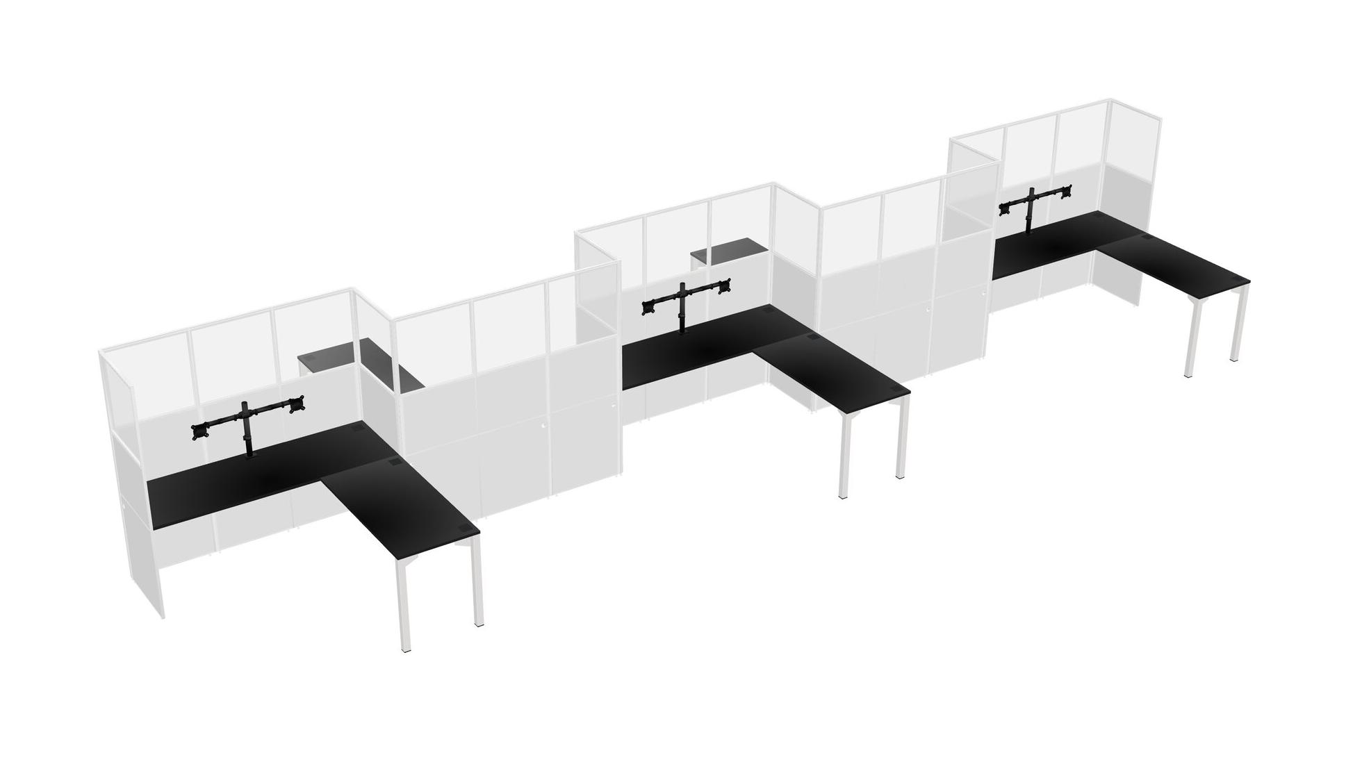 Postes De Travail En L Noirs Pour 5 Personnes - Formation En Zigzag + Retour De Panneau