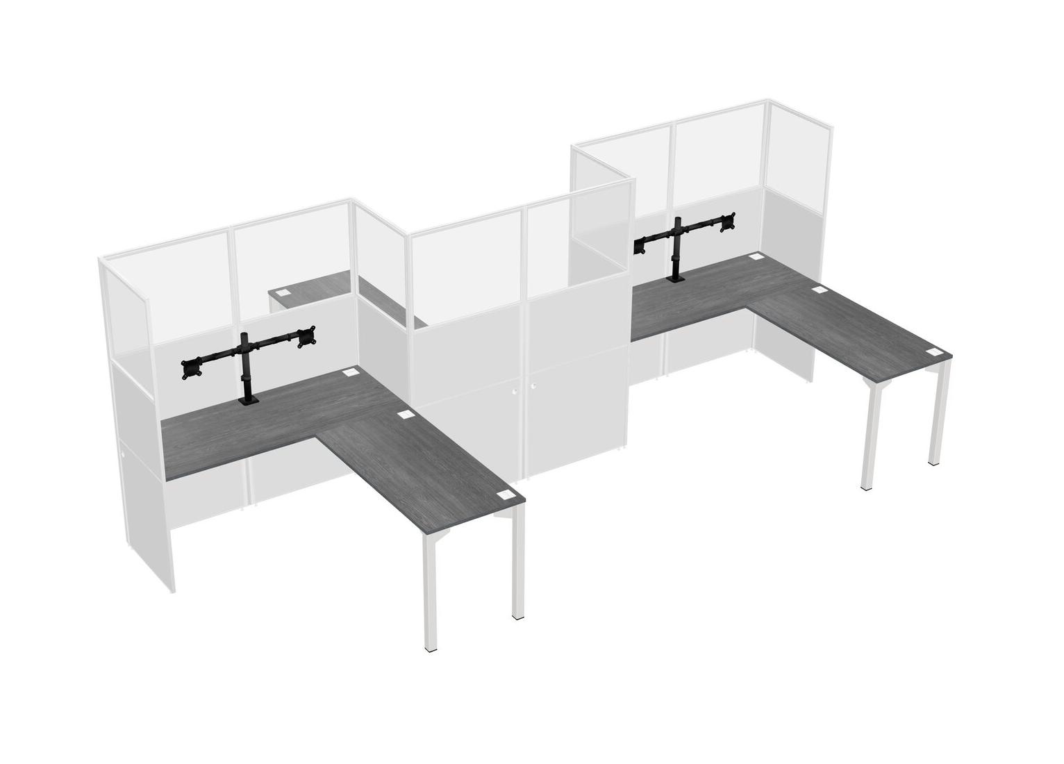 Postes De Travail En L Gris Pour 3 Personnes - Formation En Zigzag + Retour De Panneau