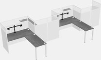 Postes De Travail En L Gris Pour 4 Personnes - Formation En Zigzag + Retour De Panneau