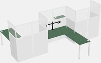 Postes De Travail En L Verts Pour 3 Personnes - Formation En Zigzag + Retour De Panneau