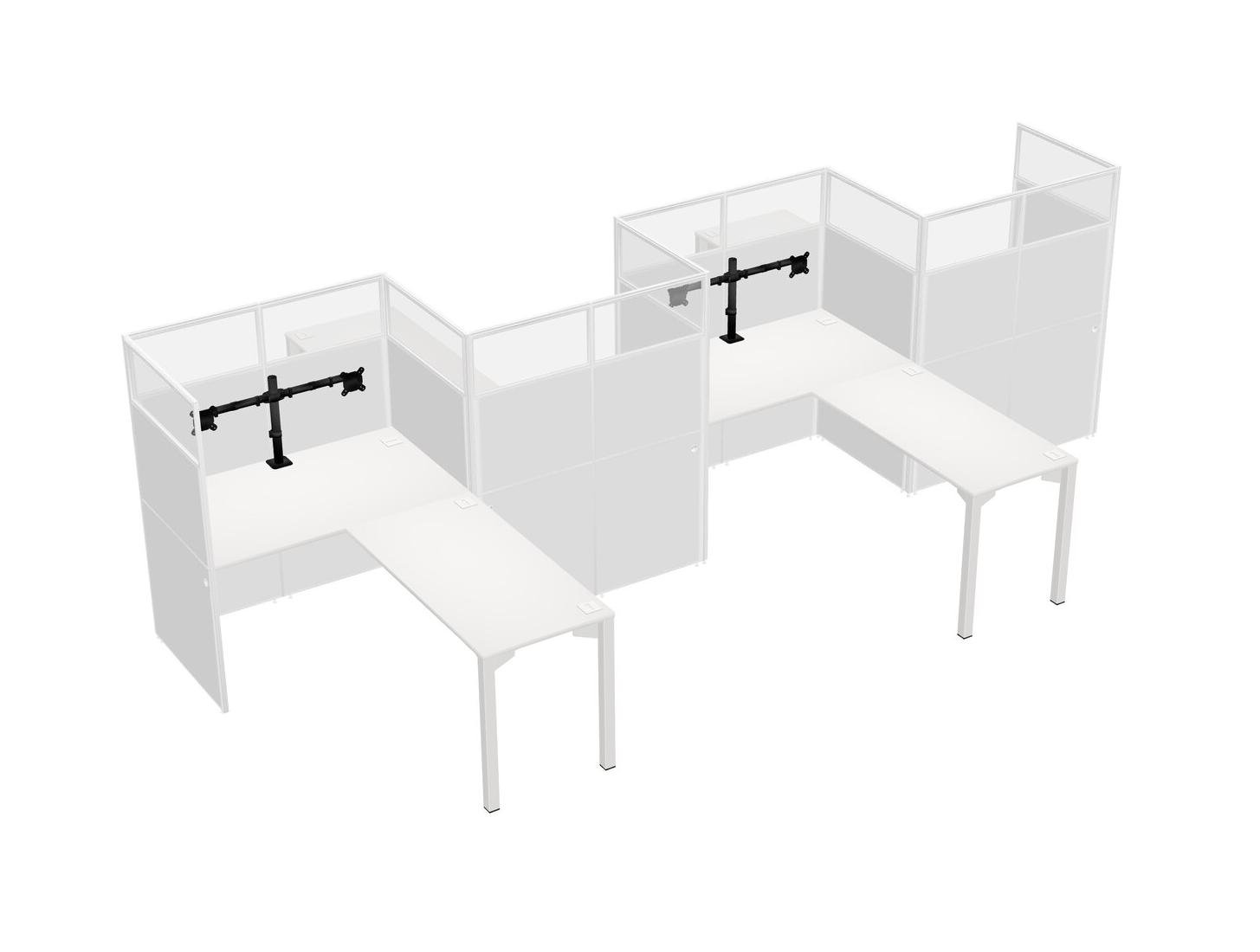 Postes De Travail Blancs En L Pour 4 Personnes - Formation En Zigzag + Retour De Panneau