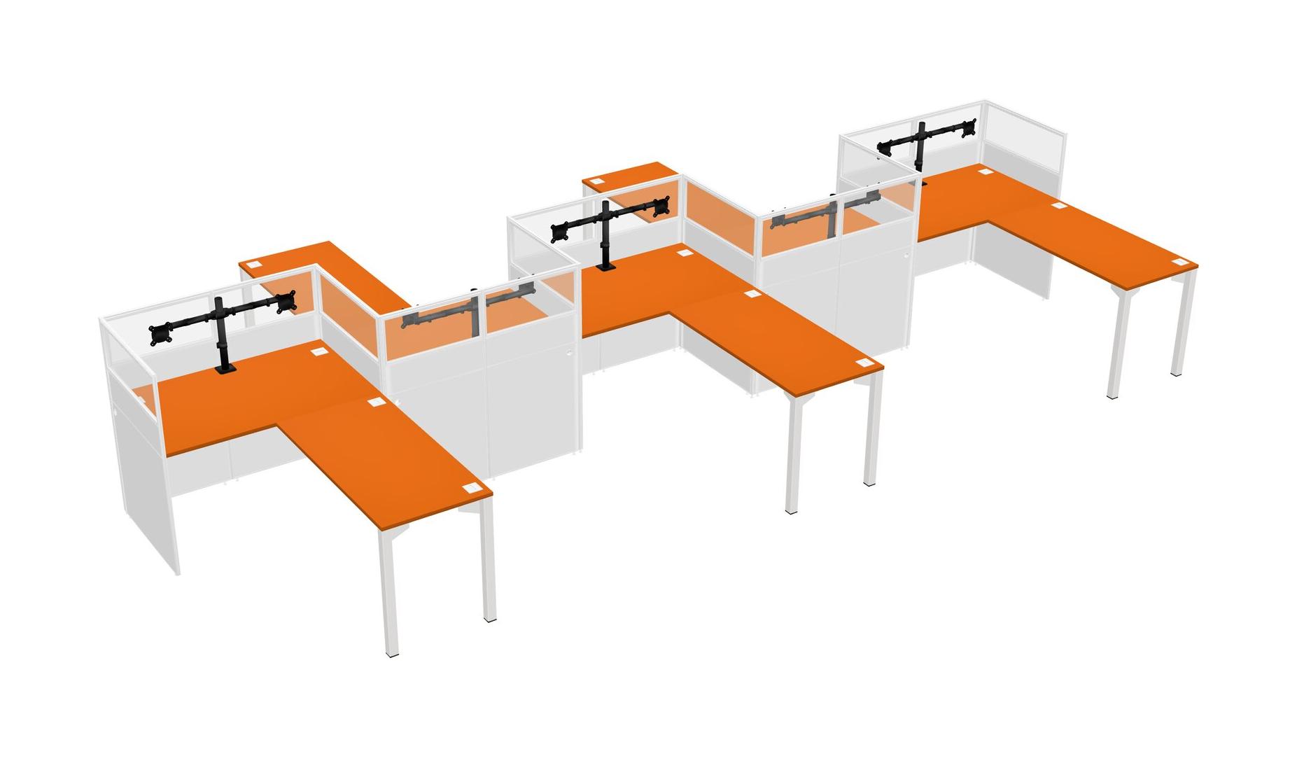 Postes De Travail En L Orange Pour 5 Personnes - Formation En Zigzag + Retour De Panneau
