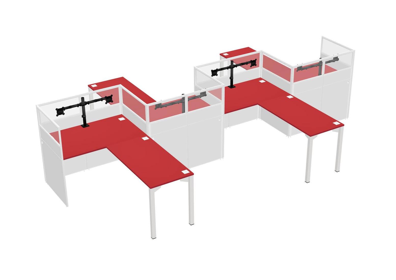 Postes De Travail En L Prism Red Pour 4 Personnes - Formation En Zigzag + Retour De Panneau