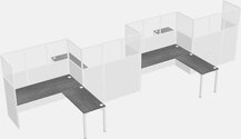 Postes De Travail En L Gris Pour 4 Personnes - Formation En Zigzag + Retour De Panneau