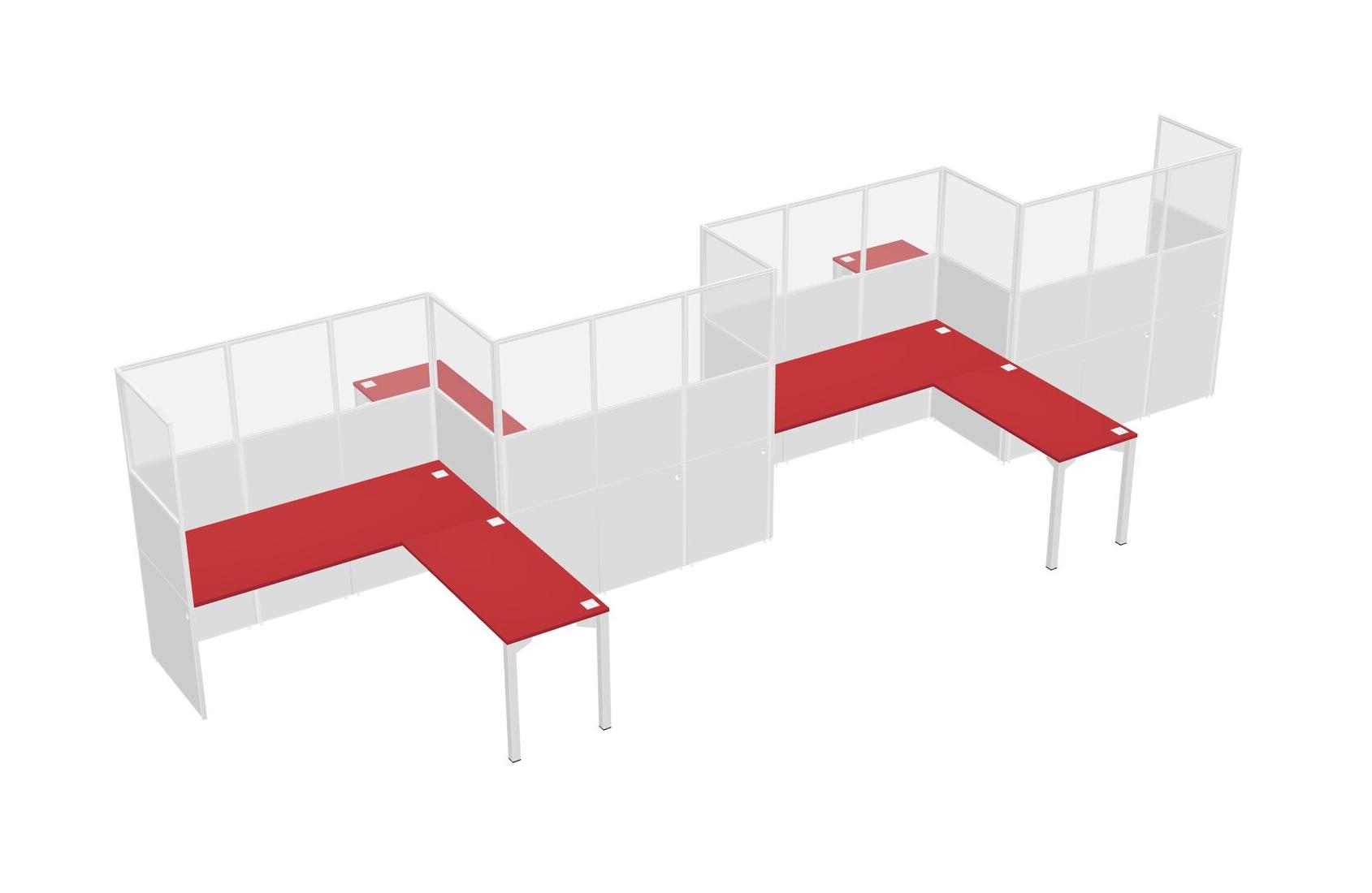 Postes De Travail En L Prism Red Pour 4 Personnes - Formation En Zigzag + Retour De Panneau