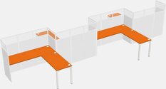 Postes De Travail En L Orange Pour 4 Personnes - Formation En Zigzag + Retour De Panneau