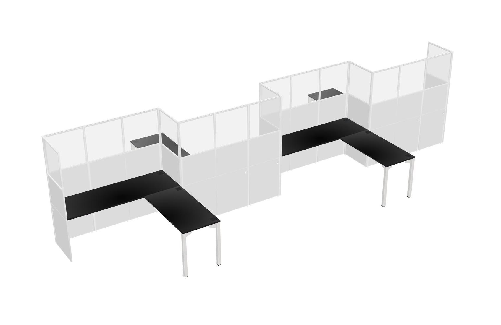 Postes De Travail En L Noirs Pour 4 Personnes - Formation En Zigzag + Retour De Panneau